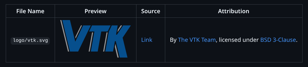 <td>By <a href="https://vtk.org/">The VTK Team</a>, licensed under <a href="https://opensource.org/license/bsd-3-clause/">BSD 3-Clause</a>.</td>