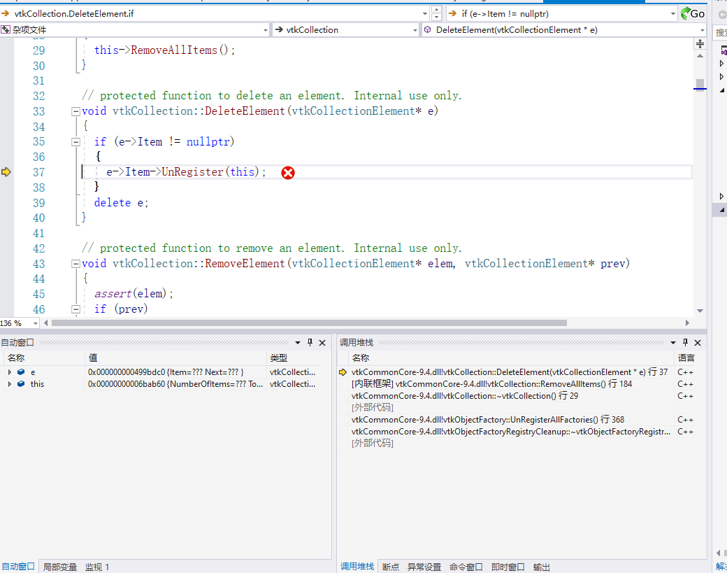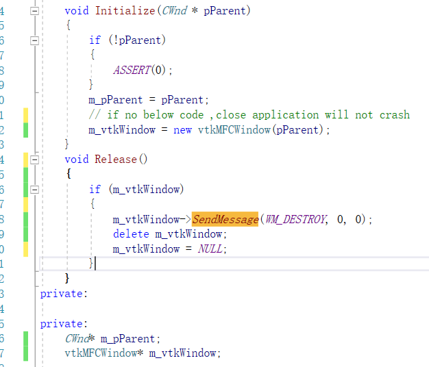only depending on vtk, use vtkmfcwindow,and setparent(HWND hwnd),crash when close