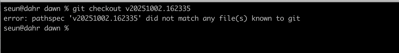 The tag definitely exists on github GitHub - google/dawn at v20251002.162335 · GitHub .